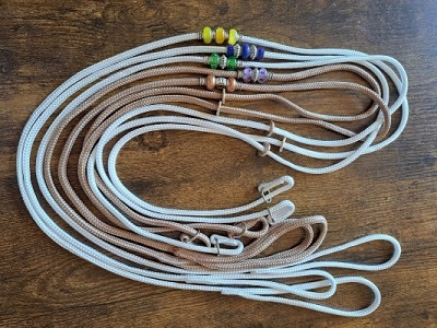 Valmistan koertele rihmasid ja kaelarihmasid.